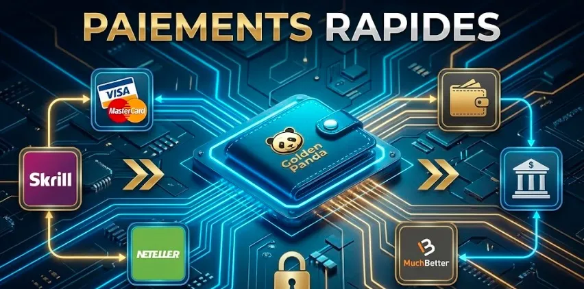 Les méthodes de paiement sur GoldenPanda casino incluent cartes bancaires (Visa, Mastercard), portefeuilles électroniques (Skrill, Neteller, MuchBetter) et virements SEPA. Les dépôts sont traités instantanément quelle que soit la méthode, avec des montants acceptés dès 10€. Le plafond de dépôt unique atteint 5 000€ pour les cartes et 10 000€ pour les virements.